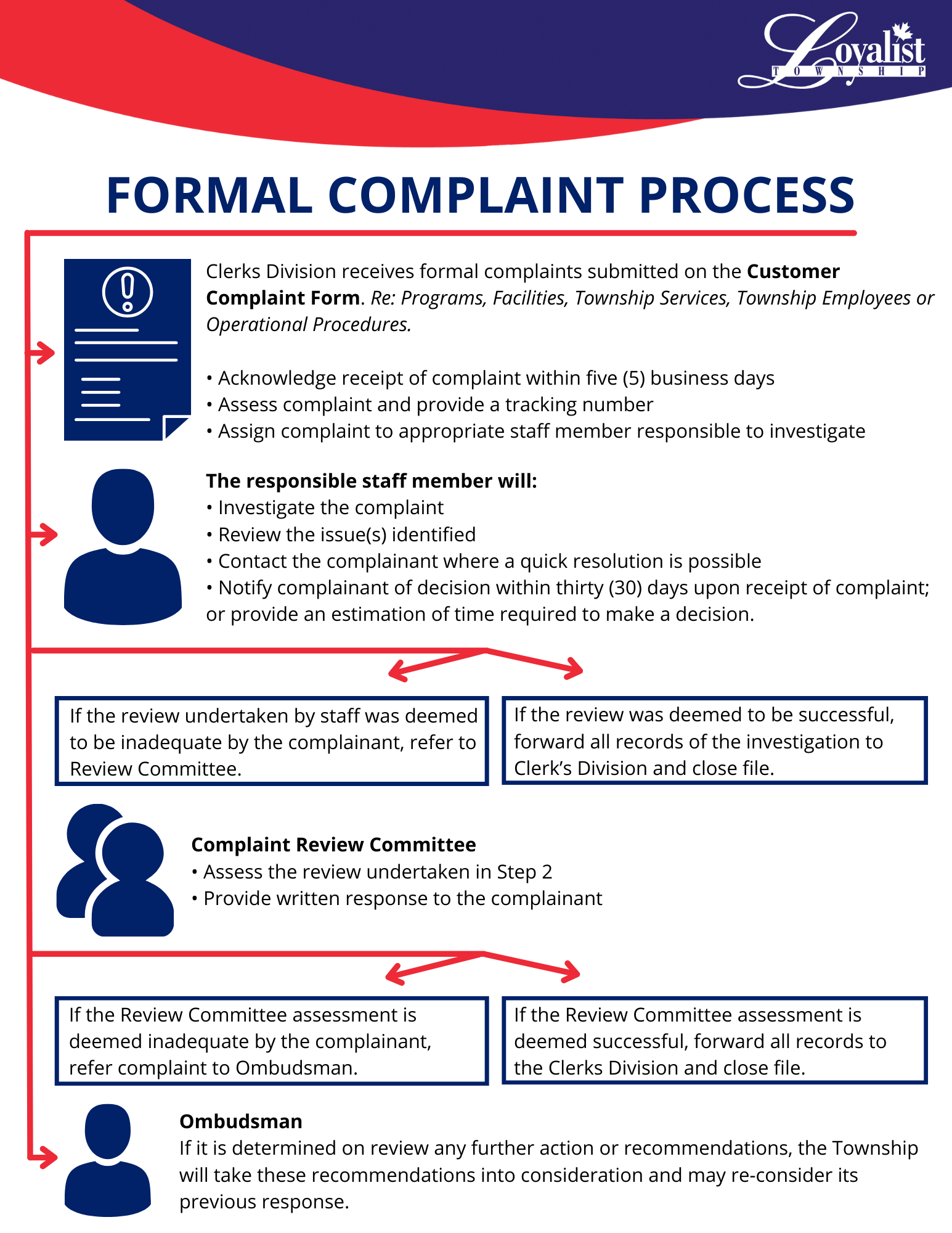 Loyalist Township has engaged the services of the Ontario Ombudsman as the Municipal Closed Meeting Investigator. The investigator is authorized to conduct investigations upon receipt of a complaint in respect to meetings or parts of meetings that are closed to the public. The investigator will determine compliance with the Act or the applicable procedural by-law with respect to closed meetings and will report on the results of such investigations.