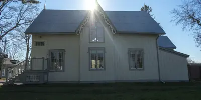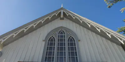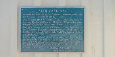 Originally built in 1859, the Layer Cake Hall is an excellent example of Carpenter's Gothic Revival architecture, and the only one of its kind in Bath. Examples of this architecture style are not widespread in Ontario. This unique structural design movement began in England and draws distinctive features including finials, scalloping and lancet mouldings.