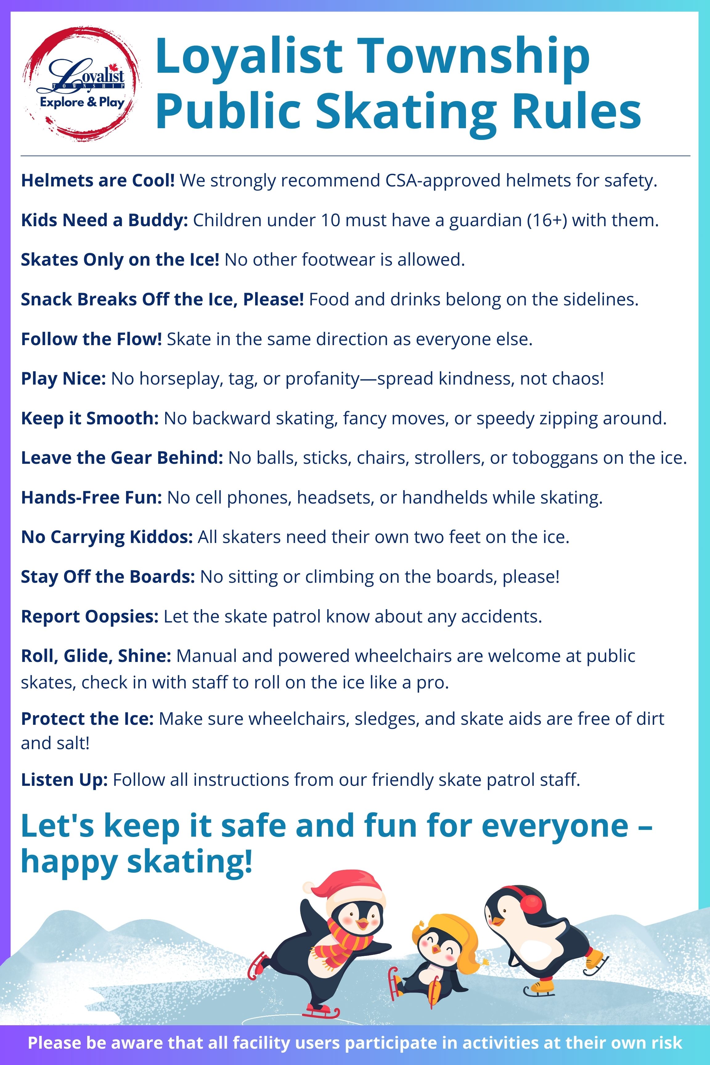 Sponsorship Opportunities: Free public skating is an activity that is always gratefully appreciated by members of the community. With your support of a sponsored public skate, you will be providing the community an opportunity to come together and enjoy recreation. Contact bookings@loyalist.ca or call us.